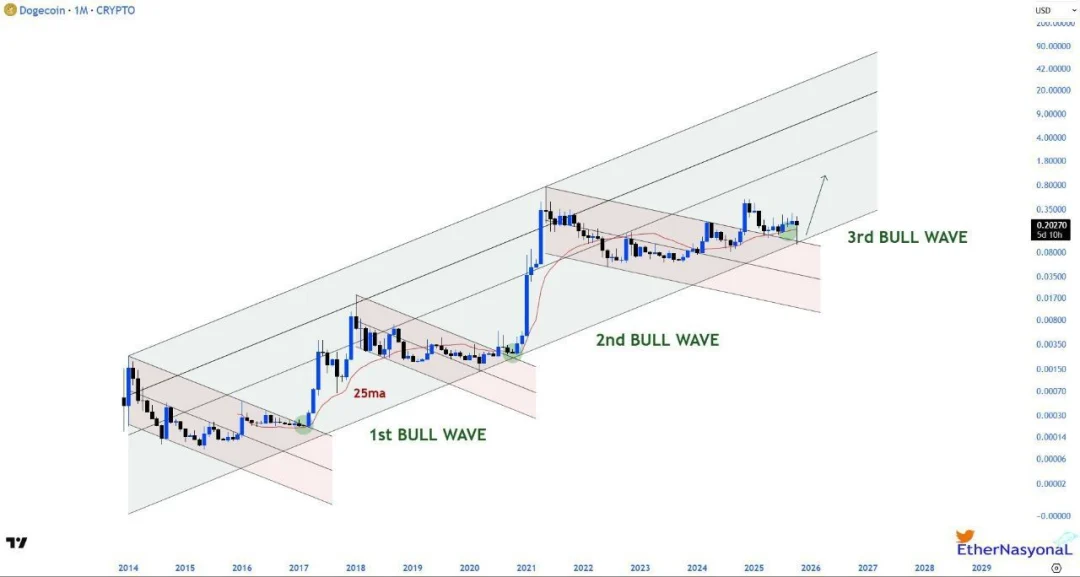 Cryptocurrency analyst Ali Martinez found critical support of Dogecoin at levels below 0.18. Such a level might lead to the push of prices to $0.25 and $0.33. These targets are 21-60% gains at present trading levels.